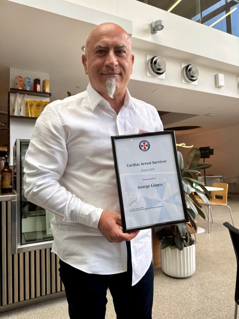 When the Triple Zero call came through, NSW Ambulance crews and the PRECARE team were dispatched. They were told CPR was already in progress, and an AED had been applied. What they didn’t have know at the time was just how extraordinary that detail was. The AED was only there because of George’s own campaigning and funding 2 years prior.